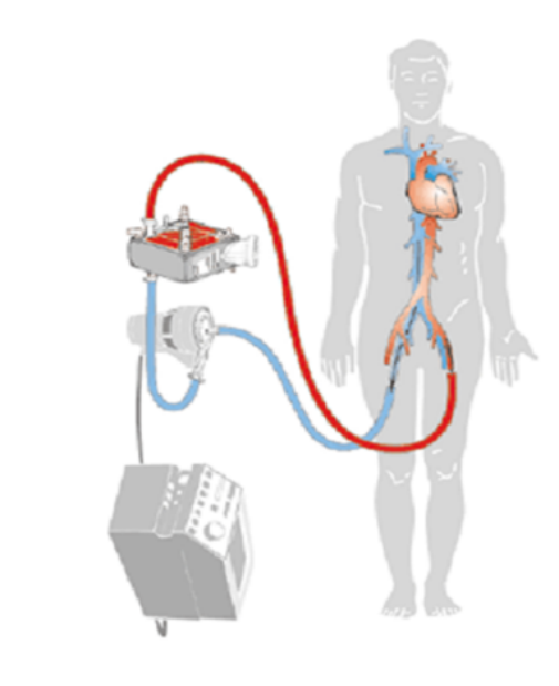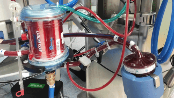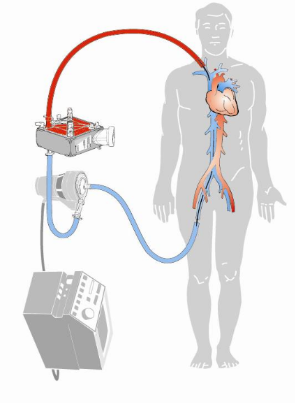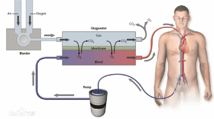 二.用动力泵将体内的静脉血引出体外,经过氧合器旁路氧合后注入病人动脉或静脉系统起到心肺替代作用,维持人体脏器组织氧合血供。