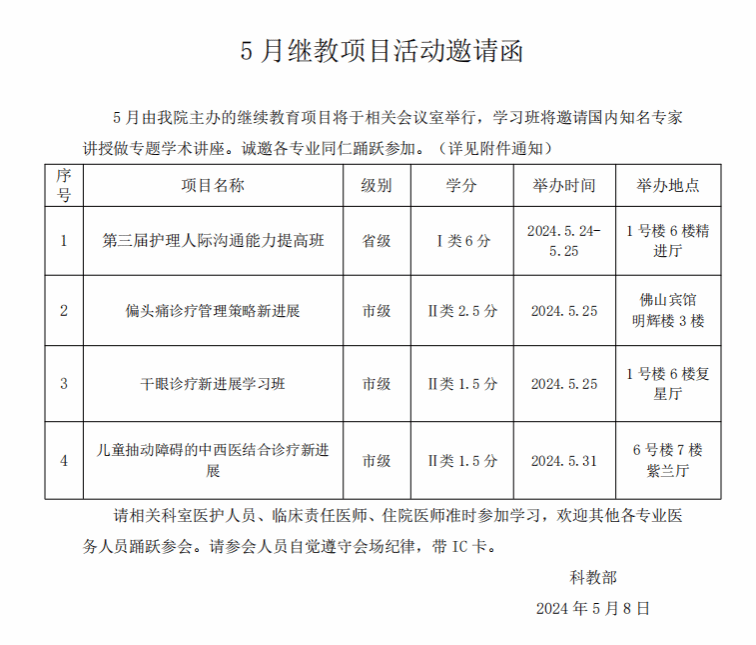 2024年5月继教项目邀请函