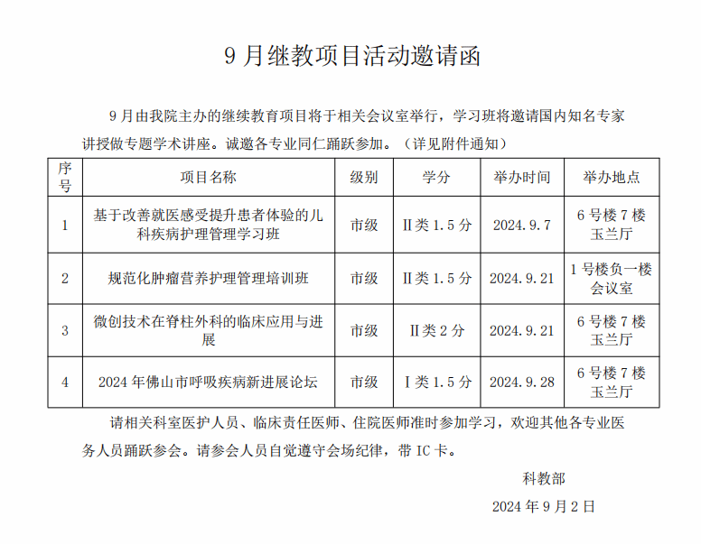 2024年9月继教项目邀请函