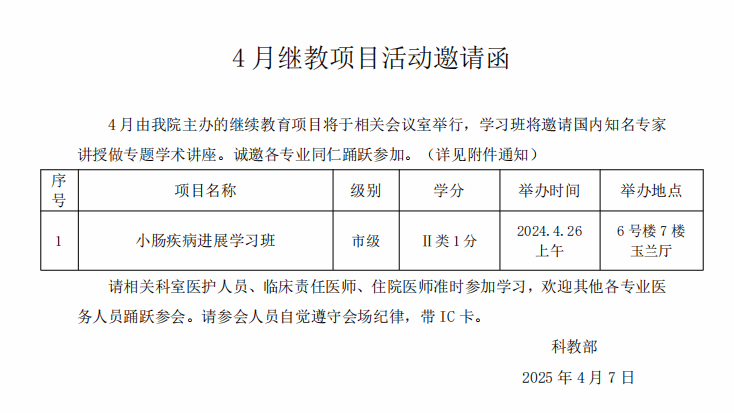 2025年4月继教项目邀请函