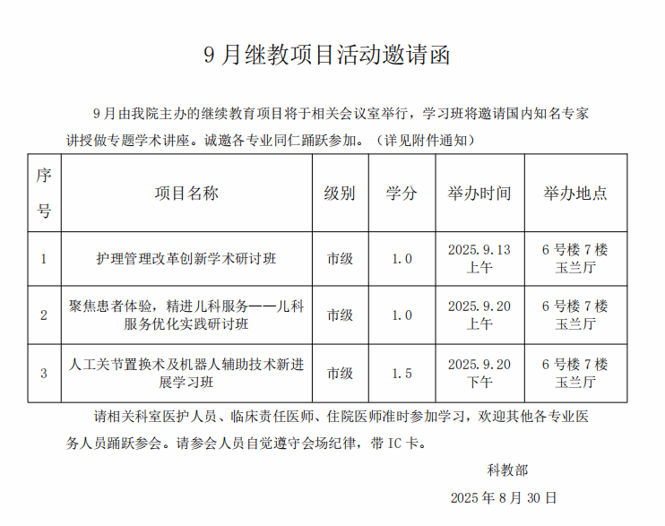 2025年9月继教项目邀请函
