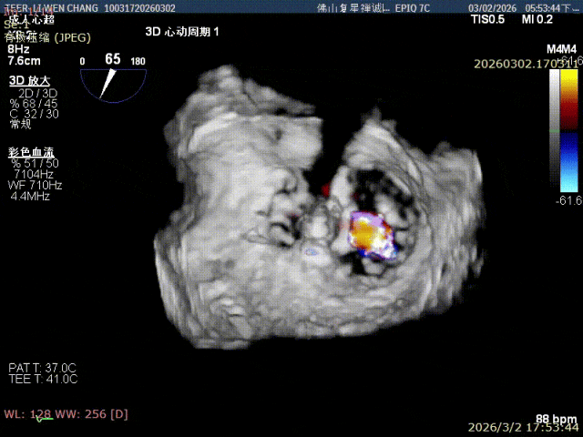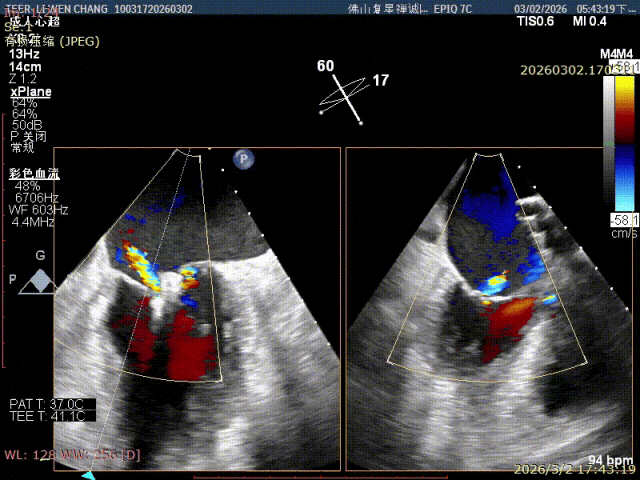 彭宇程教授在术后总结道:“本例重度二尖瓣反流患者高龄、基础疾病多、心脏解剖条件复杂,对术者的操作经验、器械操控能力及术中应变决策均提出极高要求。我们团队依托规范的介入流程、精准的超声评估及灵活的手术策略,顺利完成双枚瓣膜夹植入。此次手术的成功实施,是我院在结构性心脏病微创介入治疗领域的又一重要里程碑,进一步夯实区域内经导管二尖瓣修复技术的临床应用基础,也为更多高龄、高危、不耐受传统外科手术的重症二尖瓣反流患者提供了安全、可行、高效的微创治疗新方案。”