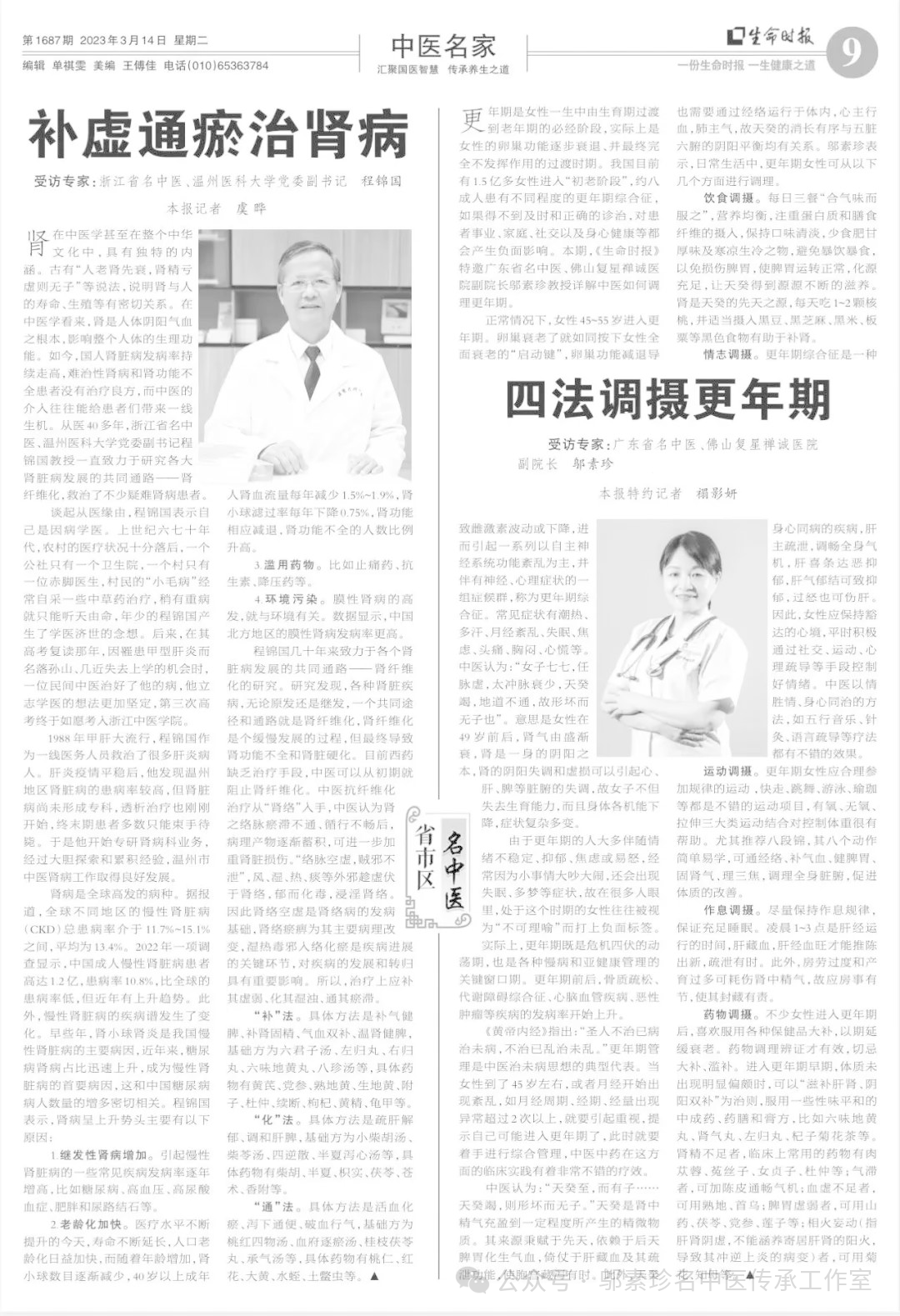 《生命时报》刊登了记者对广东省名中医、佛山复星禅诚医院邬素珍教授关于更年期保健的采访: