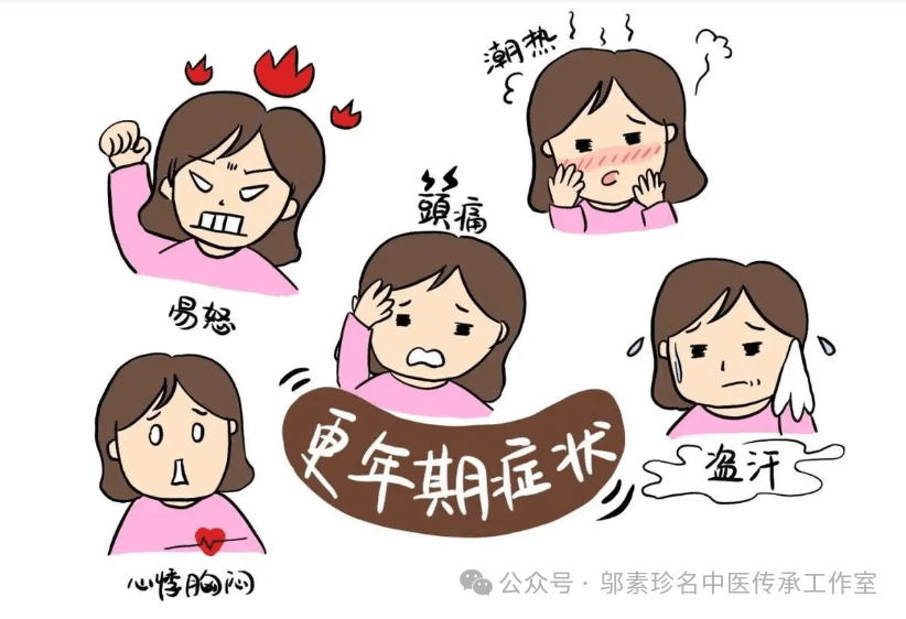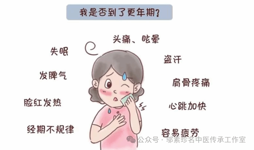 正常情况下,女性在45~55岁左右会进入更年期。卵巢衰老了就如同按下女性全面衰老的“启动键”,卵巢功能减退导致雌激素波动或下降,进而引起一系列以自主神经系统功能紊乱为主,并伴有神经、心理症状的一组症候群,称之为更年期综合征。常见症状有潮热、多汗、月经紊乱、失眠、焦虑、头痛、胸闷、心慌等。中医认为:“女子七七,任脉虚,太冲脉衰少,天癸竭,地道不通,故形坏而无子也”。意思是女性在49岁前后,肾气由盛渐衰,肾中的精微物质——天癸逐渐衰竭,肾是一身的阴阳之本,肾的阴阳失调和虚损可以引起心、肝、脾等脏腑的失调,故女子不但失去生育能力,而且身体各机能下降,症状复杂多变。