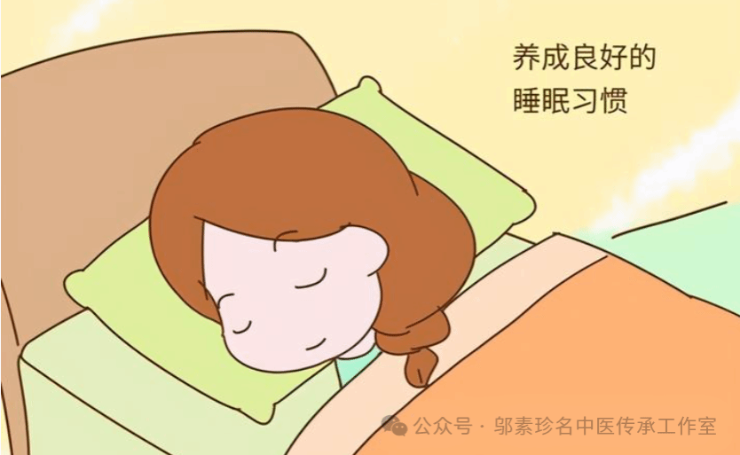 作息调摄:尽量保持作息规律,保证有充足的睡眠。凌晨1~3时是肝经运行的时间,肝藏血,肝经血旺才能推陈出新,疏泄有时。此外,房劳过度和产育过多可耗伤肾中精气,故应房事有节,使其封藏有责。