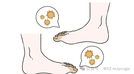 足癣主要由真菌家族中的红色毛癣菌(Trichophyton rubrum)和其他皮肤癣菌引起。这些真菌通常生活在潮湿和温暖的环境中,如公共浴室、游泳池、更衣室和运动鞋内。